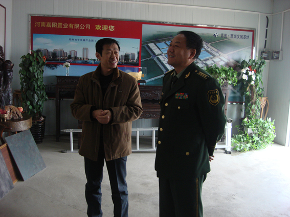 2012年11月10日,郑州市消防队支队长邢明典到我司参观考察,公司董事长张楸枫与副总祁广平陪同进入工地察看,董事长张楸枫为其讲解工程消防进度、消防现状等。