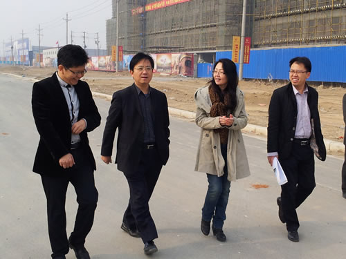 2013年3月15日,郑州市高新区房管局赵局、王局莅临我司指导工作。公司董事长张楸枫陪同参观公司工地。